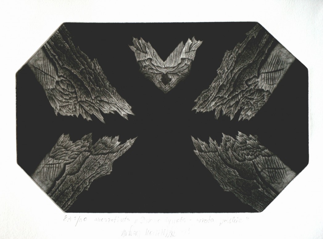 Lacrimosa mezzotinta 16x12 cm 2022  Muszla II mezzotinta Q 9 cm 2023  Wojna mezzotinta 10x29 cm 2023 tryptyk  Wojna- schron III maezzotinta 7,5x9,5 cm 2022  Wojna-rozpacz mezzotinta 10x10 cm 2023  Wojna-schron II mezzotinta 10x9,5 cm 2022  Wojna-schron IV mezzotinta 12x15,5 cm 2023  Wojna-schron mezzotinta 10x9 cm 2022  Lacrimosa II mezzotinta 10x9,5 cm 2022  Latarnia-drugi brzeg mezzotinta 10x9 cm 2023  Martwa natura mezzotinta 7x 9,5 cm 2023  Wolność mezzotinta 10x10 cm 2017  Wolność mezzotinta 9,5 x10 cm 2019  Cytryna mezzotinta 8,5 x9,5 cm 2021  Eden- pandemia mezzotinta 24x15,5 cm 2020  Eden-bezsenne noce mezzotinta 12x16 cm 2020  Eden-deska mezzotinta 9,5x9,5 cm 2020  Eden-gałązka 9x10 cm mezzotinta 2020  Eden-granice cienia mezzotinta 9,5 x10 cm 2020  Eden-brzozy II mezzotinta 9,5x9,5 cm 2019  Eden-źródło mezzotinta 16 x12,5 cm 2019  Eden- muszla mezzotinta 11,5x14 cm 2019  Kamień na kamieniu mezzotinta 9,5x9,5 cm 2019  Ziemia mezzotinta tryptyk 10x30 cm 2019  Eden-ogród II mezzotinta 9,5x9,5 cm 2018  Drzewo żywota-zakazany owoc mezzotinta dyptyk  16x14,5 cm 2015  Eden-Brzozy intaglio 12,5x16 cm 2019  Drzewo żywota-wiosna polska mezzotinta 16x12,5 cm 2016  Drzewo żywota wrota polskie mezzotinta 16x24 cm 2015  Drzewo żywota-wiadomość mezzotinta 10x10 cm 2015  Drzewo żywota II mezzotinta 16x12,5 cm 2015  Drzewo żywota -zorza II mezzotinta 12x16 cm 2017  Drzewo żywota-gorzkie żale mezzotinta  16x12 cm 2012  Zakazany owoc mezzotinta 16x12 cm 2013-14  Brama północna druk cyfrowy 70x100 cm 2019  Drzewo żywota-fala druk cyfrowy 70x100 cm 2015  Drzewo żywota-fala II druk cyfrowy 76x106 cm 2015  Drzewo żywota-obietnica druk cyfrowy 76x106 cm 2015  Dezyderata II druk cyfrowy 70x90 cm 2010  Oświecenie V druk cyfrowy 150x112 cm 2009  Lament VI druk cyfrowy 150x100 cm 2008  Oświecenie II druk cyfrowy 150x100 cm 2009  Lament XXI druk cyfrowy 150x112 cm 2009
